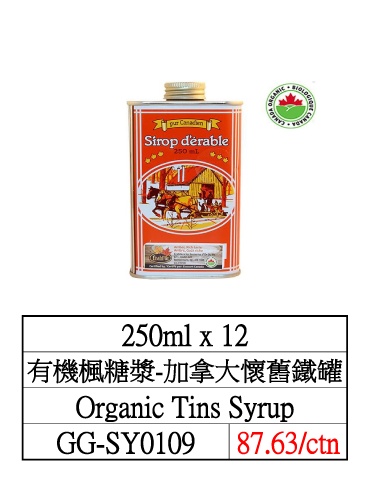 250ml x 12 有機楓糖漿-加拿大懷舊鐵罐 Organic Tins Syrup GG-SY0109 87.63/ctn