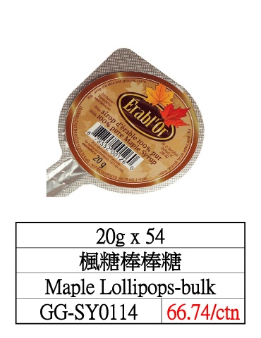 20g x 54 楓糖棒棒糖 Maple Lollipops-bulk GG-SY0114 66.74/ctn