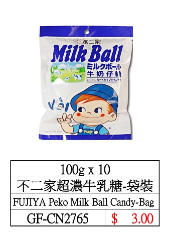 100g x 10 不二家超濃牛乳糖-袋裝 FUJIYA Peko Milk Ball Candy-Bag 3.00 GF-CN2765 $