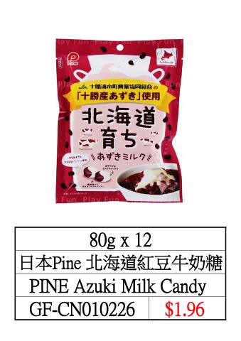 80g x 12 日本Pine 北海道紅豆牛奶糖 PINE Azuki Milk Candy GF-CN010226 $1.96