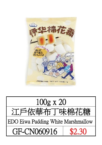 100g x 20 江戶依華布丁味棉花糖 EDO Eiwa Pudding White Marshmallow GF-CN060916 $2.30