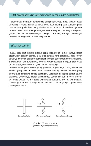 dipantulkan dengan cermin. Sifat-sifat cahaya yang dihasilkan oleh cermin