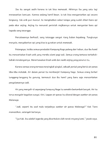 “Jadi, seperti itu asal mula terjadinya sumber air panas Malanage?” Kak Tiara