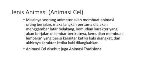 • Animasi Cel disebut juga Animasi Tradisional