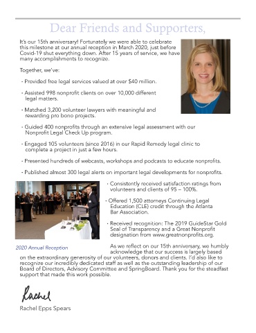 2020 Annual Reception As we reflect on our 15th anniversary, we humbly