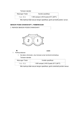 Bila hasilnya tidak sesuai dengan spesifikasi, ganti crankshaft position sensor.