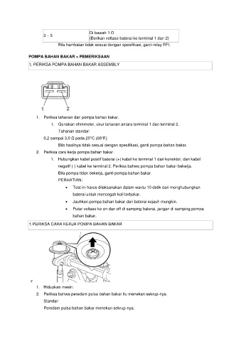 negatif (-) kabel ke terminal 2. Periksa bahwa pompa bahan bakar bekerja.