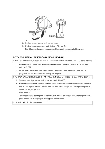 2. Periksa bahwa cooling fan mulai berputar ketika temperatur cairan pendingin lebih tinggi dari
