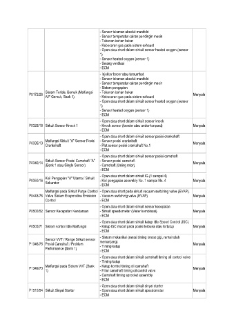 - Open atau short dalam sirkuit sensor posisi camshaft