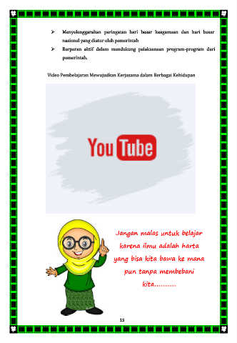 ➢ Menyelenggarakan peringatan hari besar keagamaan dan hari besar nasional yang diatur oleh pemerintah ➢ Berperan aktif dalam mendukung pelaksanaan program-program dari pemerintah. Video Pembelajaran Mewujudkan Kerjasama dalam Berbagai Kehidupan 13