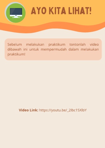 Ayo Kita lihat! Sebelum melakukan praktikum tontonlah video dibawah ini untuk mempermudah dalam melakukan praktikum! Video Link: https://youtu.be/_2Ibc15XlbY
