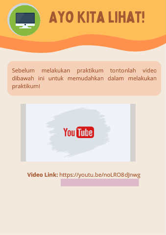 Ayo Kita lihat! Sebelum melakukan praktikum tontonlah video dibawah ini untuk memudahkan dalam melakukan praktikum! Video Link: https://youtu.be/noLRO8dJnwg