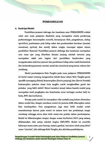 Pengembangan E-modul Materi Bulutangkis pada Mata Pelajaran Pendidikan Jasmani 1