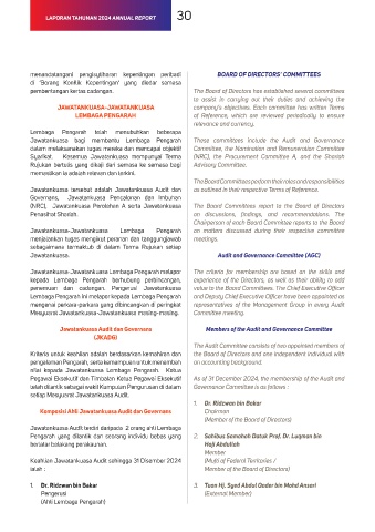 Jawatankuasa bagi membantu Lembaga Pengarah These committees include the Audit and Governance