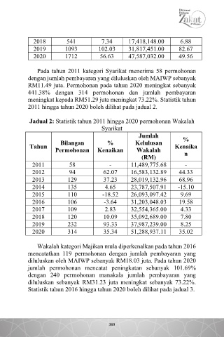 Jadual 2: Statistik tahun 2011 hingga 2020 permohonan Wakalah
