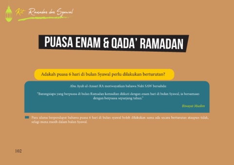 “Barangsiapa yang berpuasa di bulan Ramadan kemudian diikuti dengan enam hari di bulan Syawal, ia bersamaan