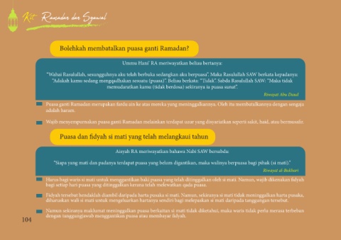104 dengan tanggungjawab menggantikan puasa atau membayar fidyah.