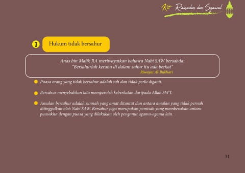 ditinggalkan oleh Nabi SAW. Bersahur juga merupakan pemisah yang membezakan antara