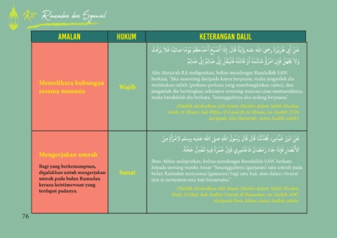 digalakkan untuk mengerjakan Sunat bulan Ramadan menyamai (ganjaran) bagi satu haji, atau dalam riwayat