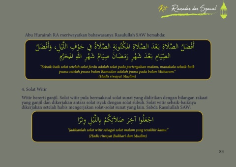 “Sebaik-baik solat setelah solat fardu adalah solat pada pertengahan malam, manakala sebaik-baik