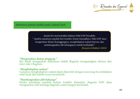 Ketika masuknya sepuluh malam terakhir Ramadan, Baginda SAW akan