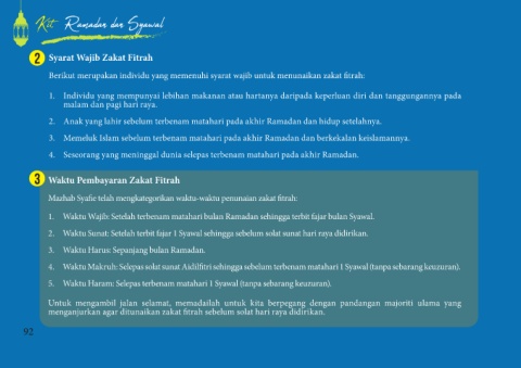 2. Waktu Sunat: Setelah terbit fajar 1 Syawal sehingga sebelum solat sunat hari raya didirikan.