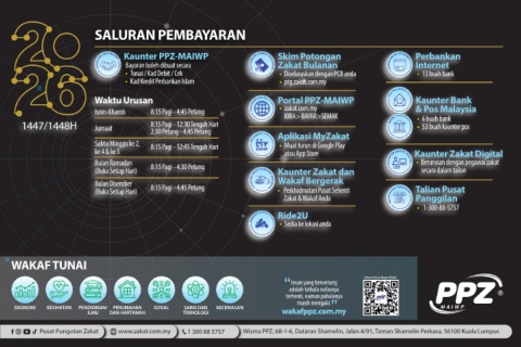 Pusat Pungutan Zakat www.zakat.com.my 1 300 88 5757 Wisma PPZ, 68-1-6, Dataran Shamelin, Jalan 4/91, Taman Shamelin Perkasa, 56100 Kuala Lumpur.