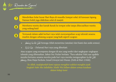 7 Mendirikan Solat Sunat Hari Raya di musolla (tempat solat) di kawasan lapang.
