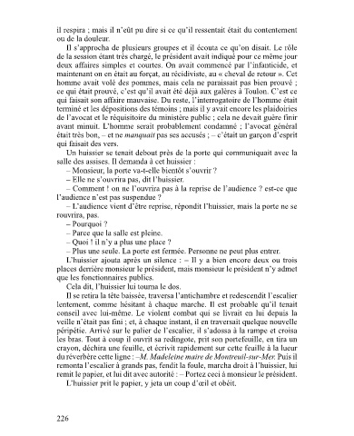 – L’audience vient d’être reprise, répondit l’huissier, mais la porte ne se