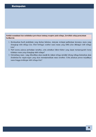 Setelah memahami dan melakukan percobaan tentang reseptor pada telinga, Jawablah setiap pernyataan