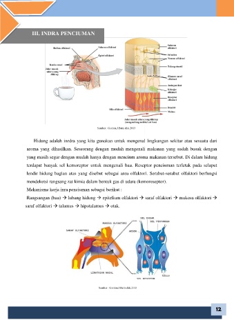 Rangsangan (bau) lubang hidung epitelium olfaktori saraf olfaktori mukosa olfaktori