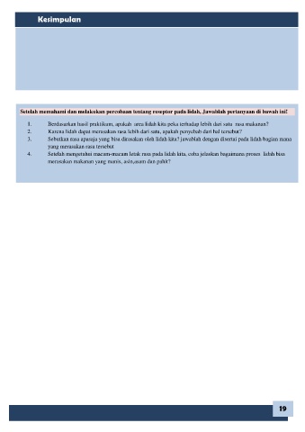 Setelah memahami dan melakukan percobaan tentang reseptor pada lidah, Jawablah pertanyaan di bawah ini!