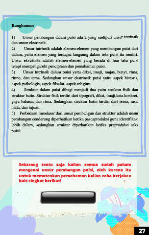 4) Struktur dalam puisi dibagi menjadi dua yaitu struktur fisik dan