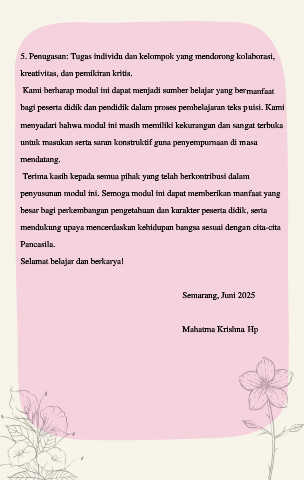 bagi peserta didik dan pendidik dalam proses pembelajaran teks puisi. Kami