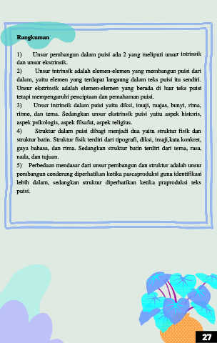 4) Struktur dalam puisi dibagi menjadi dua yaitu struktur fisik dan