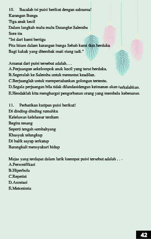 10. Bacalah isi puisi berikut dengan saksama!