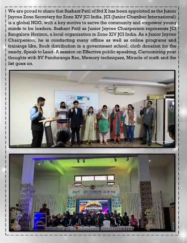 minds to be leaders. Sushant Patil as Junior Jaycee Chairperson represents JCI