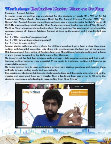 A master class on coding was conducted for the students of grade III – VIII of Sri Sri