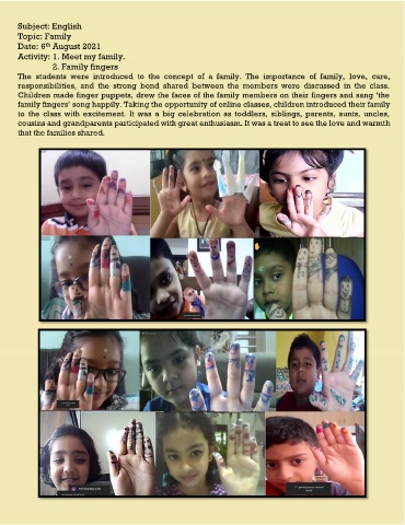 family fingers’ song happily. Taking the opportunity of online classes, children introduced their family
