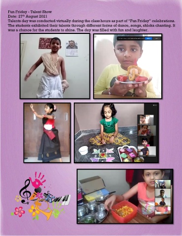 Talents day was conducted virtually during the class hours as part of “Fun Friday” celebrations.