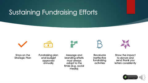 Stays on the Fundraising plan Message and Revaluate Show the impact