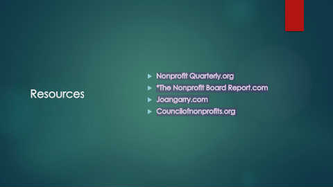 Nonprofit Quarterly.org *The Nonprofit Board Report.com Resources Joangarry.com Councilofnonprofits.org
