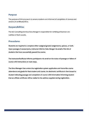 The I5O Consulting Services Data Manger is responsible for verifying all learners are