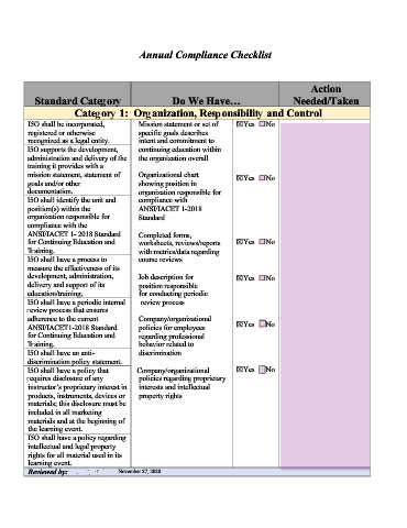 ANSI/IACET 1- 2018 Standard Completed forms,
