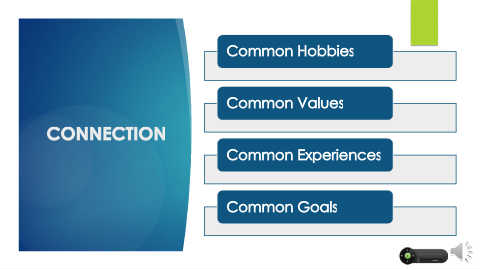 Common Hobbies Common Values CONNECTION Common Experiences Common Goals