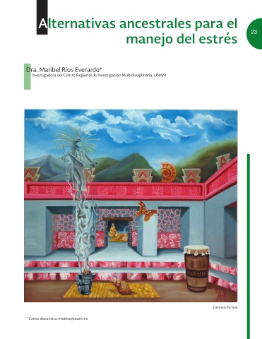 Alternativas ancestrales para el manejo del estrés 23 Dra. Maribel Ríos Everardo* Investigadora del Centro Regional de Investigación Multidisciplinaria, UNAM Carmen Parada * Correo electrónico: maririos@unam.mx
