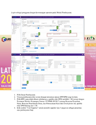 Login sebagai pengguna dengan kewenangan operator pada Modul Pembayaran.