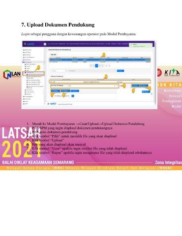 1. Masuk ke Modul Pembayaran →Catat/Upload→Upload Dokumen Pendukung