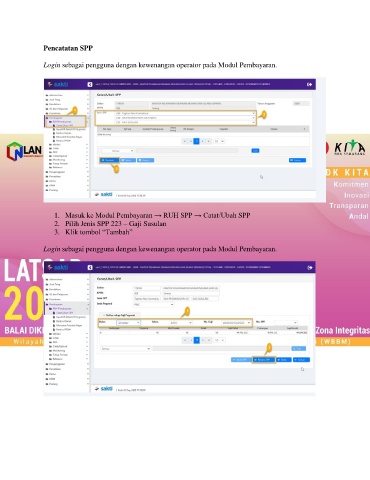 1. Masuk ke Modul Pembayaran → RUH SPP → Catat/Ubah SPP
