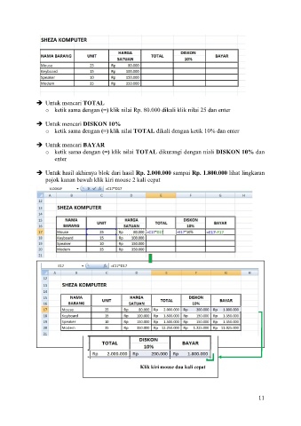 o ketik sama dengan (=) klik nilai TOTAL dikurangi dengan niali DISKON 10% dan